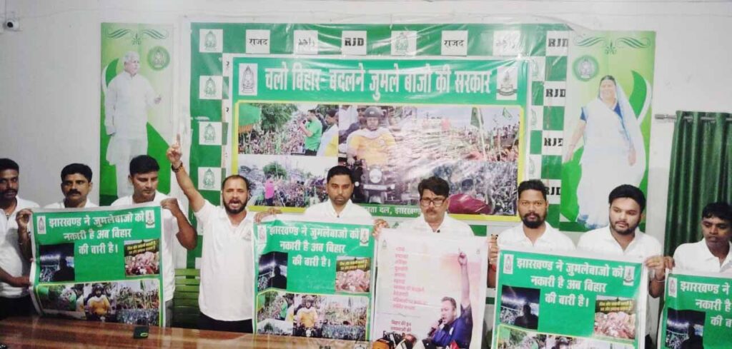 रांची: झारखंड प्रदेश युवा राष्ट्रीय जनता दल (राजद) के अध्यक्ष रंजन कुमार यादव ने प्रदेश कार्यालय में आयोजित एक प्रेस वार्ता में संगठन विस्तार की घोषणा की। उन्होंने वर्ष 2025 से 2028 तक के लिए नई प्रदेश कार्यकारिणी और जिला अध्यक्षों की सूची जारी की।